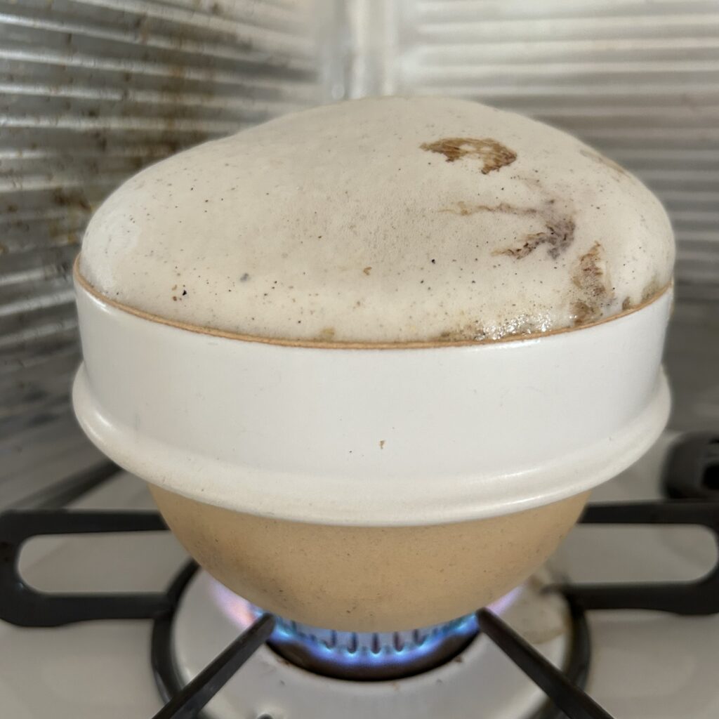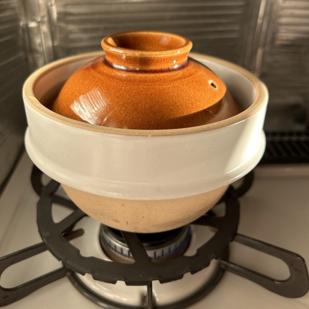 ちなみに、火加減はごく弱火が良いと思うのですが、コンロによっては、火がうまく小さくできなかったり、この1合炊き釜が小さめでうまくのせられない、というお悩みもあるかと思います(うちのコンロがそれでした)。