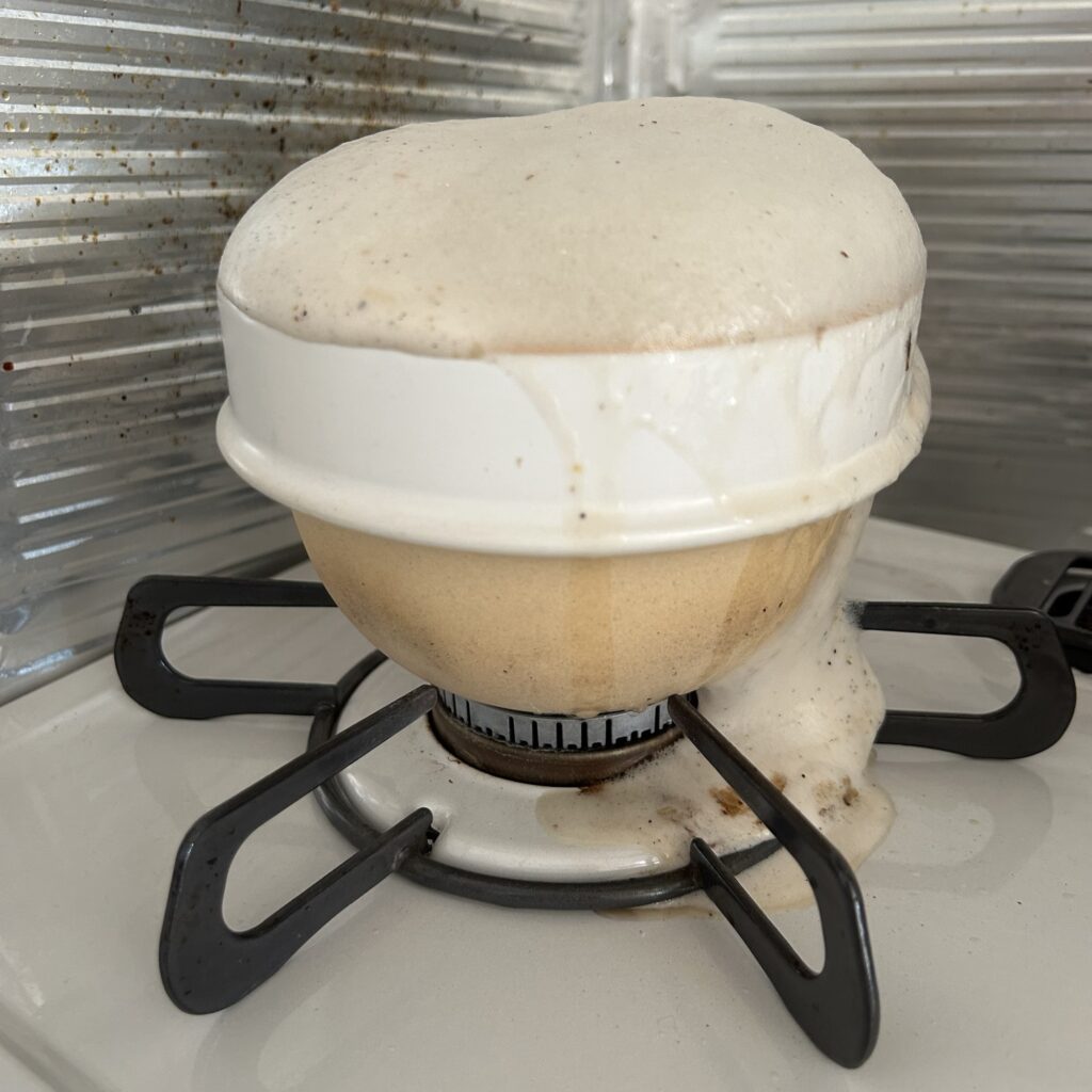 うっかり長く火にかけすぎてしまった、または、弱火にしてたのに、なにかの振動で、コンロの火が大きくなっていたというとき。(みなさんくれぐれもご注意くださいませ)