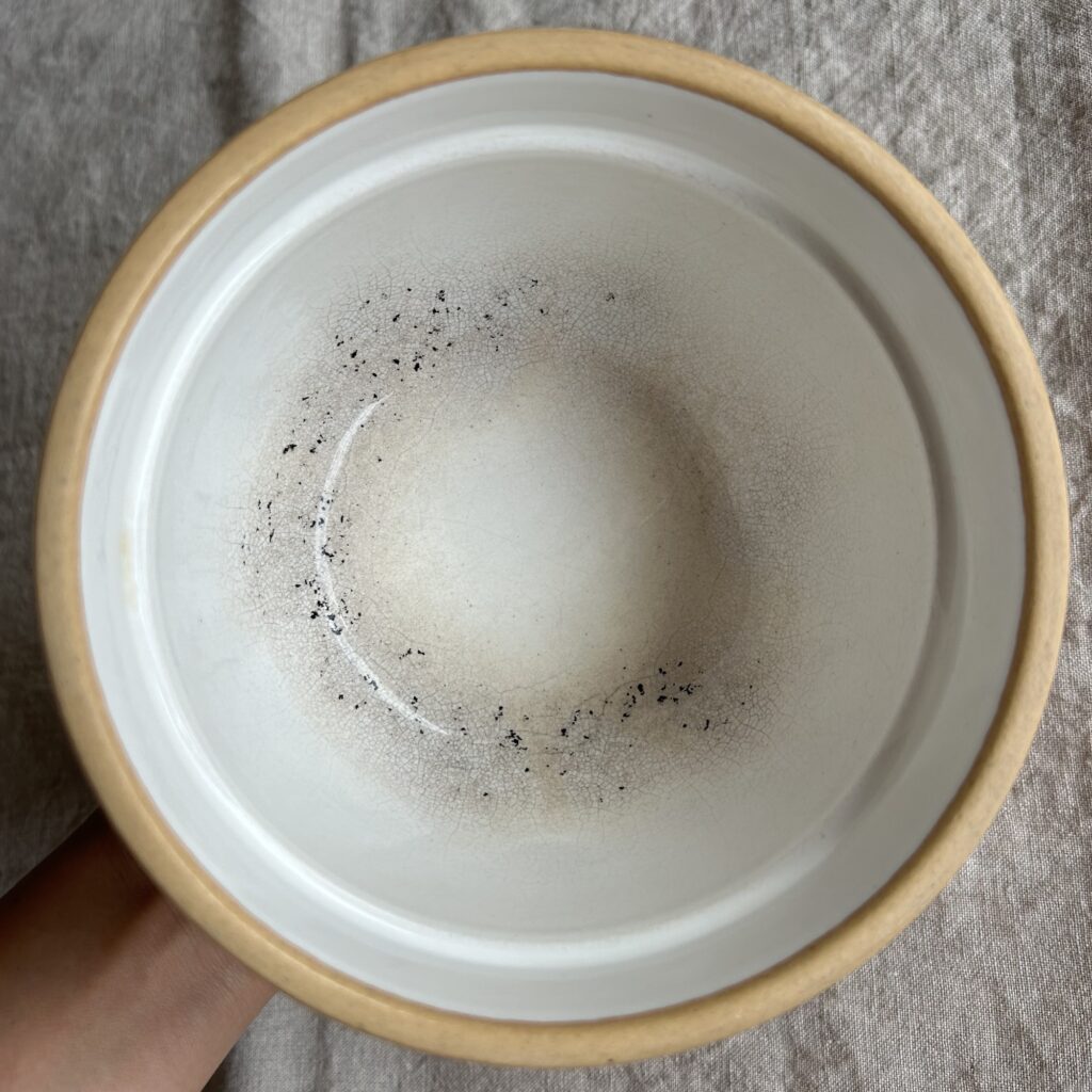 この日は何を思ったか、米の研ぎ汁と重曹で、この焦げを落とす方法をやってみたら、こんなことに。